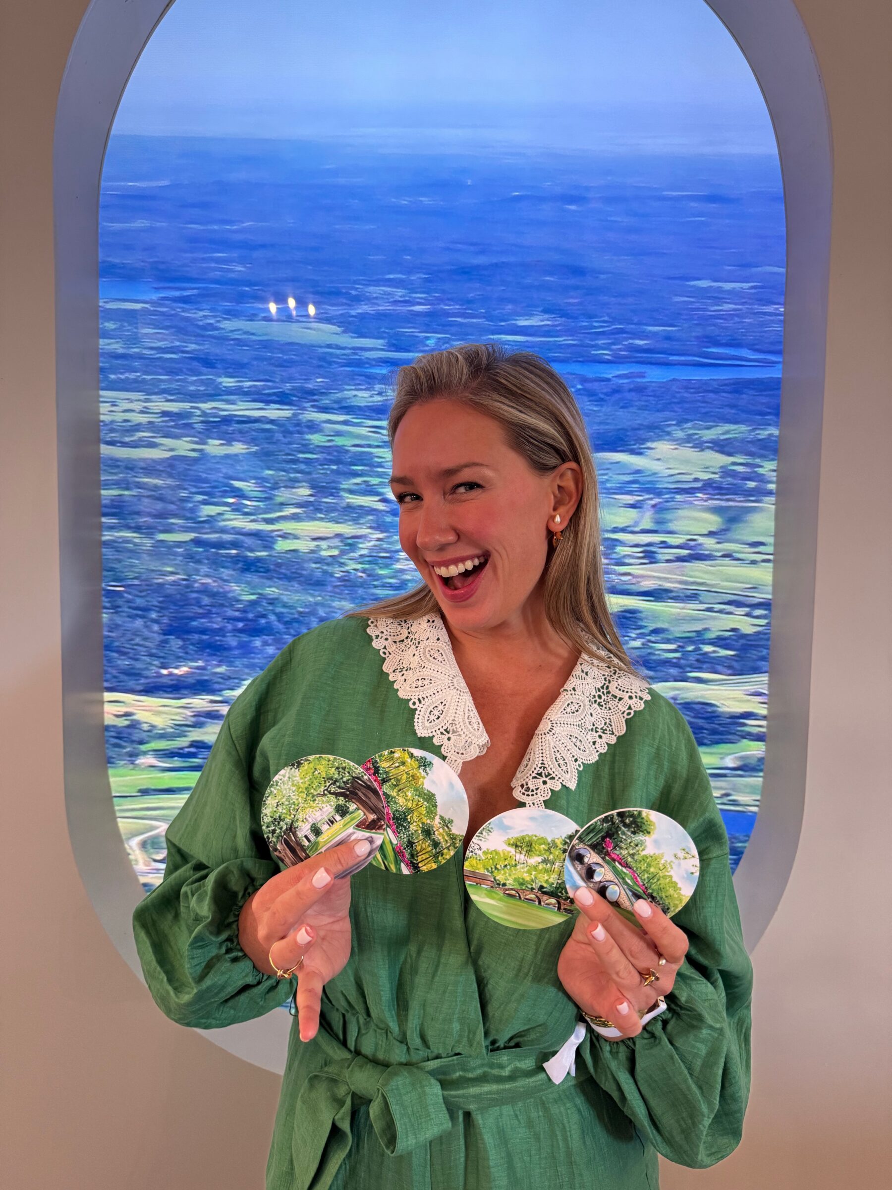 Darlings, surprise!! The Wheels Up x Travel Write Draw Augusta 2026 commemorative merch also includes COASTERS. In-flight coasters featuring my artwork…are you kidding me?!! This partnership has been everything I’ve ever dreamed of for my baby brand and more. And perhaps even more importantly, seeing how deeply my artwork has resonated at the Wheels Up Clubhouse this week has moved me beyond words!!!